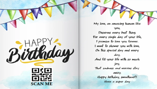 We design and print sophisticated Greeting Card that meets your requirment, and in addition we embed QRcode to it which can show a shout out or custom poems video specifically for the celebrant